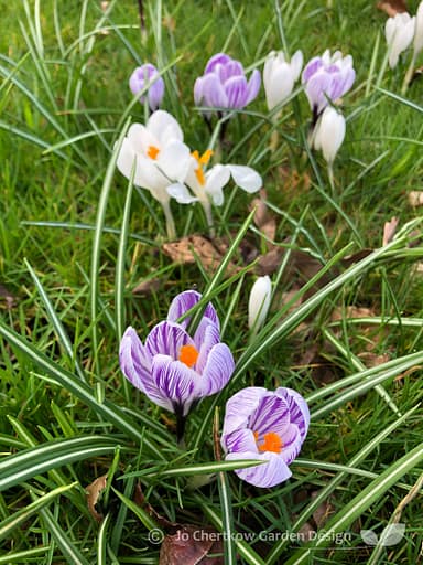 If you don’t have a lawn crocuses will be quite happy in a pot or trough. Just watch out if you share your garden with squirrels because crocus bulbs are a particularly favoured snack!