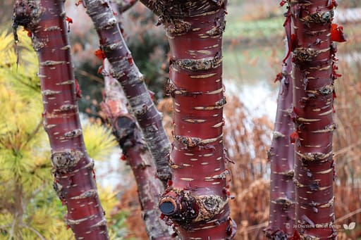 Trees can also add interest to the garden at this time of year through decorative bark. Silver birch varieties such as Betulus utilis ‘Jaquemontii’ are rightly popular trees with stunning white bark when mature, but there are plenty of other trees with attractive bark.