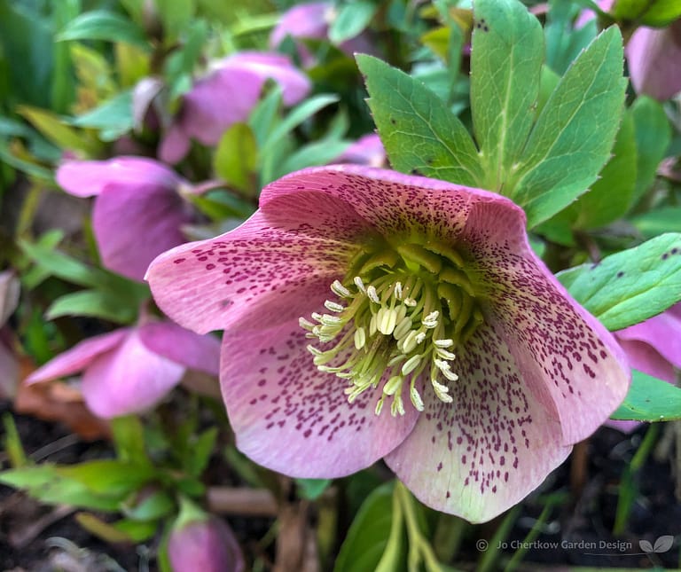 Cut the leaves back as the flower buds emerge to reveal the flowers more dramatically and fresh foliage will grow back after flowering. Hellebores need partial shade so a spot under deciduous trees and shrubs often works well. Helleborus hybrids will self seed happily, although seedlings won’t have the same colouring. I love the variety that brings in my garden with new seedlings revealing their colours once they have matured.